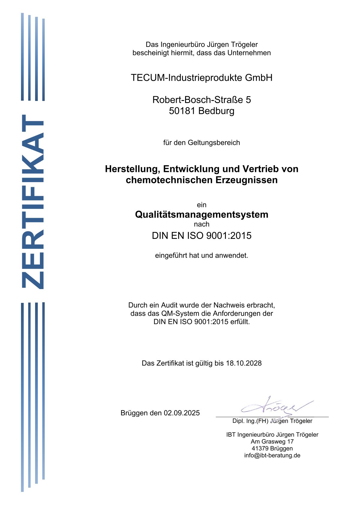 DIN EN ISO 9001 Qualitätsmanagementsystem für die TECUM GmbH